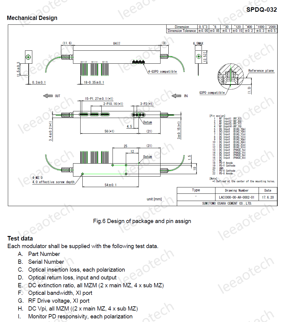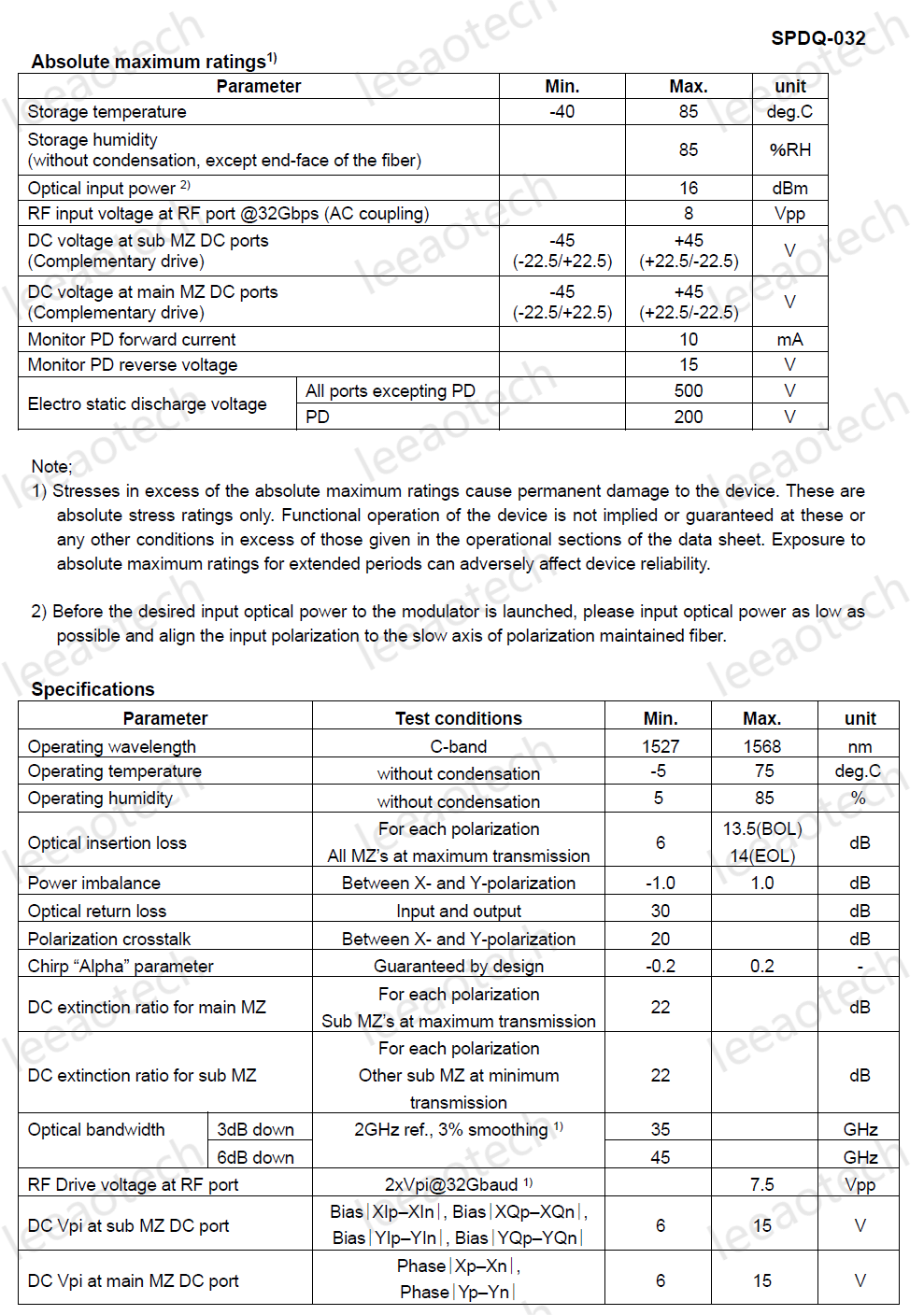Sumitomo Sumicem住友 400Gbps高速電光調(diào)制器 SFF Modulator Single Drive 1550nm T.SBXH1.5PL-35PD-ADC